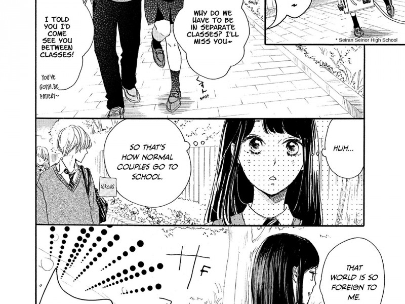 Essayer de décrire Jardin secret simplement par l'intrigue et les personnages pourrait donner aux lecteurs de se retrouver un terrain très familier pour un shojo. C'est vrai que la prémisse ne surprend pas vraiment, mais ce premier tome est plutôt concluant. La romance était douce, les deux rôles principaux sont des gens sympas qui s'entendent avec un minimum de moqueries. Ran est introvertie sans être d'une timide à toute épreuve. Akira est «le type populaire» par excellence mais il n'a pas l'ego qui va souvent avec. C'est aussi souvent drôle sans être une comédie. Ran est un peu comme une Sawako moins intense, car elle en vient vite à apprécier les choses autour d'elle et à s'ouvrir à Akira. Akira est le genre de garçon que l'on pourrait qualifier de "rafraîchissant". Le reste du casting ne s'est pas encore tout à fait ouvert (la meilleure amie de Ran est là pour être l'extravertie de la bande mais nous savons peu de choses sur elle, sauf qu'elle avait un petit ami, puis a rompu avec lui). La mangaka laisse beaucoup de commentaires et d'événements amusants qui rappellent le vieux manga Hana to Yume.