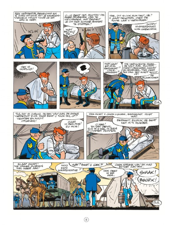 Suite au décès du scénariste Raoul Cauvin, c'est l'auteur de bande dessinée Kris (alias Christophe Goret) qui a repris la plume de cette série classique de longue haleine. Il a fait ses débuts dans l'album précédent et en a tiré une grande satisfaction. Nous avons également pris beaucoup de plaisir à lire ce deuxième album. Rien n'est innovant, mais nous ne sommes pas près de débrancher Les Tuniques Bleues, les histoires nous ont déjà procuré trop de plaisir de lecture pour cela. Et que dire du dessinateur Willy Lambil, aujourd'hui âgé de 87 ans ? Combien de dessinateurs l'imitent ? Livrer un nouvel album chaque année pendant des décennies ? La qualité de ses dessins diminue. On le remarque surtout dans les visages des personnages et souvent dans les mains. Mais le fait que l'homme sache encore ce qu'est le dessin est perceptible dans les grandes planches et les dessins d'ensemble de camps et de forts. Sa prédilection pour la faune locale est à nouveau présente. Hiboux, canards, ratons laveurs, écureuils, poissons (chat), biches et chevaux... beaucoup de chevaux passent à nouveau. Il n'est pas encore question d'abandonner. Depuis deux ans, il forme un nouveau tandem avec Kris. Espérons que ce tandem continuera encore quelques années.