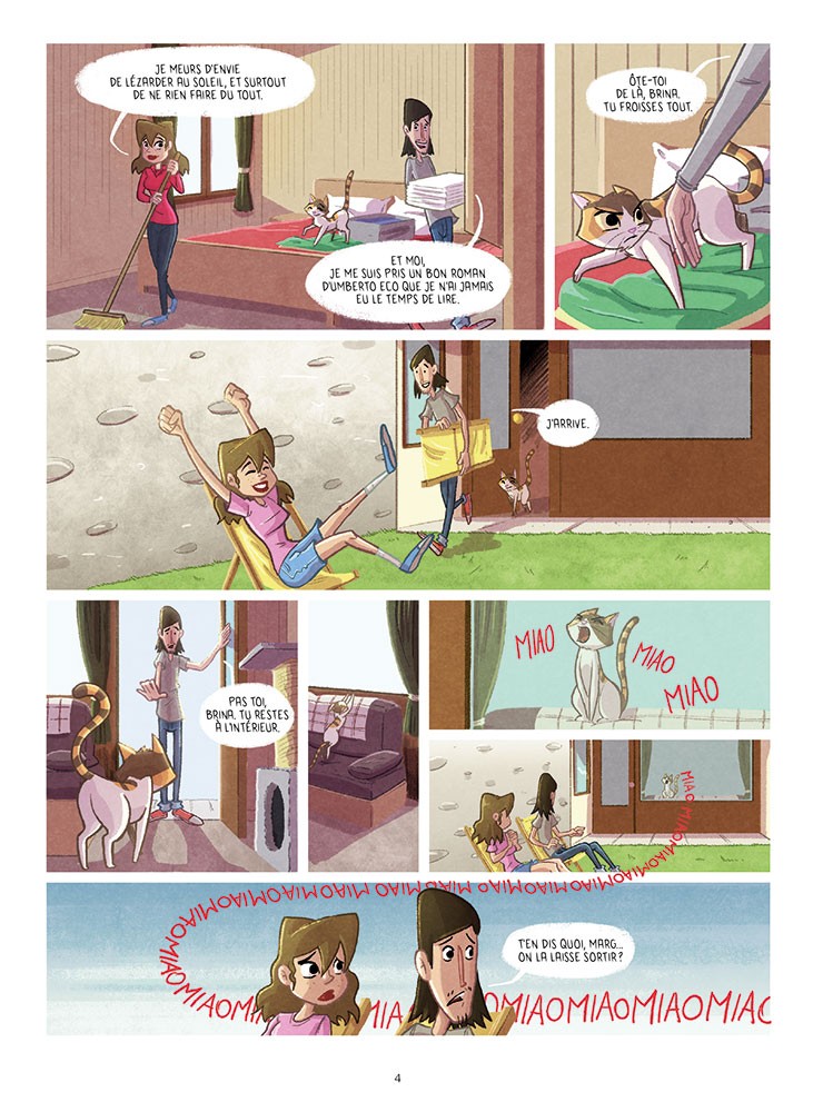 C'est une histoire sur les humains et les animaux. Elle est touchante par certains aspects, car elle montre à quel point les humains sont prêts à se battre pour leurs animaux. Mais elle aborde également le côté sombre de ce qui peut arriver aux chats lorsqu'un humain estime qu'il y en a "trop" dans une portée. Les illustrations de ce roman ont été réalisées de manière très belle, et il est vraisemblable que n'importe quel jeune enfant aimera vraiment les illustrations ainsi que le scénario lui-même. Les couleurs sont douces, tous les chats sont dessinés de façon à ce que vous puissiez voir qu'ils ont des personnalités différentes. Nous sommes intrigués de voir les prochaines aventures de Brina !