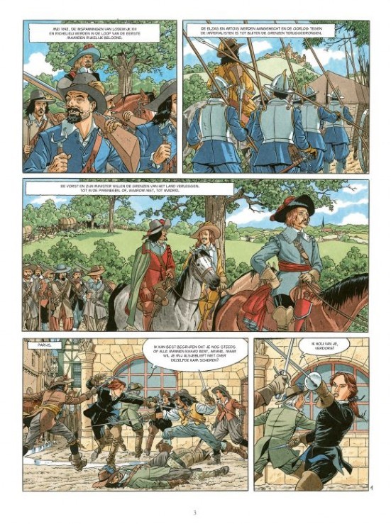 Dans les albums précédents, la situation historique avec le roi Henri IV (père de Louis XIII) était évoquée sporadiquement pour donner un cadre à l'histoire. Maintenant, cela vient au premier plan, compliquant le soi-disant lien avec les nombreux personnages historiques à suivre. Les personnages de la série restent finalement des personnages fictifs qui ont un lien entre eux ou qui veulent faire face à une injustice, et le lecteur reste extrêmement curieux de la fin de leur passionnante aventure. L'inspiration de Cothias est juste un peu épuisée car la recherche d'Ariane d'un enfant non désiré, né il y a quinze ou vingt ans, s'intensifie à nouveau. Bien sûr, les relations amoureuses peuvent changer la vie de quelqu'un et nous n'avons rien contre cela, mais « trop c'est trop », a déclaré un homme politique. Il travaille déjà sur la partie suivante, désormais dessinée par Milan Jovanovic ( Ars Magna , Jason Brice , Carthago ). Les dessins de Juillard sont toujours un régal pour les yeux. Le contour des personnages, gracieusement représentés, est devenu plus raffiné et coloré avec style. Nous sommes heureux de constater qu'Ariane n'a pas encore de ride, alors qu'elle a 42 ans entre temps. Après tout, bien d'autres combattants classiques de l'injustice n'ont jamais vraiment vieilli.
