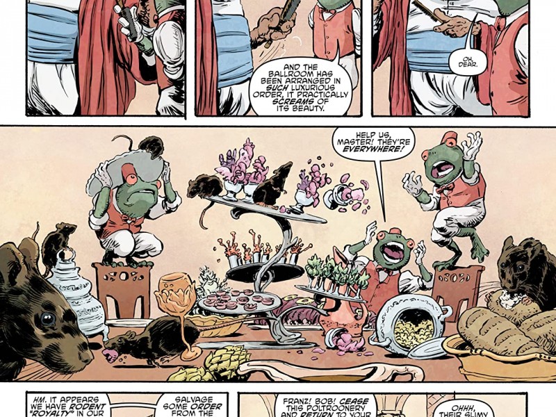 Une conférence céleste et une audience de litige ne sont peut-être pas les meilleures accroches pour une histoire, mais la réunion du Panthéon et le procès de Krang le sont certainement dans ce prochain volume de TMNT. L'histoire du Panthéon en deux numéros fait très Sandman, dans la mesure où les Endless/Pantheon se réunissent pour discuter de ce qui s'est passé, et dans la plus pure tradition de Sandman, tout est un peu obtus à part une ou deux révélations. Les personnages du Panthéon se complètent très bien et nous les voyons dans leur habitat naturel avant que les Tortues ne s'invitent à la fête ; il y a beaucoup de choses ici qui donnent envie de les voir davantage, c'est certain. Dave Wachter s'occupe de l'illustration de ces numéros - les petits visages jubilatoires qu'il donne au Roi des Rats pendant qu'il sème le chaos sont délicieux, tout comme le choc et l'incrédulité du Baron Crapaud. Puis c'est à nouveau le Free Comic Book Day et nous avons droit à une récapitulation de tout ce qui s'est passé depuis le dernier numéro du FCBD, ce qui est bien. Ensuite, le procès de Krang commence ; le premier numéro est plus une mise en place pour la mini-série Dimension X, bien que la réapparition de Leatherhead soit agréable. Cependant, lorsque nous revenons à l'après-Dimension X, les choses commencent vraiment à bouger. Nous sommes surpris de voir à quel point un procès peut être riche en action, et les événements qui mettent fin à l'histoire sont choquants et constituent un tremplin pour une nouvelle folie des Tortues. Ces numéros sont principalement signés Cory Smith, avec l'aide de Mateus Santolouco et de Chris Johnson dans le numéro 75, de format extra.