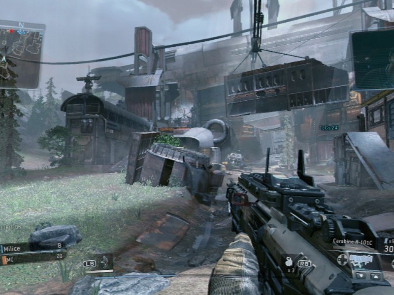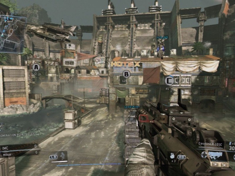 Editeur : Développeur : Genre : FPS Multijoueur : Oui Jouable via Internet : Oui Test par Nic0078/10 Titanfall arrive sur Xbox 360 porté par le studio Bluepoint Games. Un FPS nerveux.Titanfall est un FPS que l'on doit à Respawn Entertainment, un studio américain formé par les fondateurs d'Infinity Ward (Call of Duty), Jason West et Vince Zampella. Exclusif Xbox sur consoles, le titre se déroule dans un futur lointain aux confins de l'Univers. L'Interstellar Manufacturing Corporation (IMC) est en conflit avec la Milice dans un monde hostile plus connu sous le nom de Frontière. Particularité du gameplay ? Vous pouvez courir sur les murs, faire des double-sauts et pirater des Titans. Avec la capacité de passer librement du combat à pied au Titan, des machines de guerre de 8 mètres de haut vous pouvez changer de tactique à la volée pour mieux attaquer ou vous échapper en fonction de la situation. La jouabilité verticale de ce FPS vous emmène vers de nouveaux sommets. Concrètement, le titre vous place au cœur de batailles en 6 contre 6, ce qui peut paraître peu, mais sachez que le champ de bataille est rempli de personnages secondaires afin de renforcer l'aspect conflit. Avec le titan (qui descend littéralement du ciel), le gameplay évolue considérablement. A l'instar des jeux de méchas japonais, vous pourrez vous déplacez où vous le souhaitez, et profiter d'une intelligence artificielle capable de se mettre en Guard Mode et de tirer à vue sur les ennemis, ou bien en Follow Mode si vous êtes loin de votre compagnon d'arme et que vous souhaitez qu'elle vous rejoigne rapidement. Une fois dans le robot, vous pourrez profiter de canons et de roquettes pour faire rapidement le ménage à l'écran, mais aussi d'une mobilité nettement accrue. Oubliez les déplacements parfois lourd d'un Armored Core, les titans s'avèrent d'une fluidité exceptionnelle et autorisent bien des fantaisies. Sachez d'ailleurs qu'ils existent plusieurs types de titans : L'Ogre est le plus résistant mais le moins mobile, et peut arrachez des membres aux autres titans. Le Stryder est le plus léger mais le plus rapide, tandis que l'Atlas fait office de classe intermédiaire. Au sol, les soldats ne sont cependant pas totalement démunis. Ils pourront compter sur un jetpack utile pour bouger rapidement ou pour s'échapper d'un titan en voie de destruction, sans oublier le SmartGun (un pistolet qui verrouille automatiquement les ennemis). Poursuivi par un géant, le soldat pourra malgré tout essayer de se cacher dans les bâtiments ou tenter de lui sauter sur le dos pour mettre à mal ses moteurs. Fort heureusement, l'intelligence artificielle alliée ne fait pas de la figuration. Une réalisation à la hauteur ?Sur le plan technique, Titanfall tourne sur l'emblématique moteur Source, qui fête tout de même ses dix ans cette année. Difficile de rivaliser avec Battlefield 4 donc, mais le rendu demeure toutefois très satisfaisant, avec des petites animations amusantes dans les décors, et les quinze cartes proposées affichent des environnements plutôt variés. Malgré la présence de quelques ralentissements sur Xbox 360, du tearing assez notable, l'animation est globalement constante à 30 images par seconde et le graphisme n'a pas trop perdu dans la conversion (exceptées les textures encore moins fines). La jouabilité est assez arcade dans l'ensemble, et l'armement plutôt correct avec une dizaine d'armes principales (trois de poing, quatre types de grenades, quatre fusils anti-titans). Bien sur, il est possible de customiser son avatar, et de profiter de bonifications très classiques (camouflage optique, régénération automatique de la santé, sonar thermique, etc). Un Season Pass est par ailleurs déjà disponible et permettra d'obtenir les trois packs de contenu additionnel dès leur sortie (24,99€). Le jeu propose deux campagnes assez courtes (moins de deux heures chacune). On y retrouve des missions en Team Deathmatch (mode Attrition) ou en Domination (mode Hardpoints). Le scénario demeure extrêmement mince cela étant. On ne jouera pas à Titanfall pour ses qualités littéraires de toutes façons. Le titre propose également un mode Capture the Flag assez nerveux, ou encore le Last Titan Standing (chaque joueur dispose d'un mécha et l'équipe qui gagne est celle dont un représentant a encore un robot en jeu) et le Pilote Hunter (un Team Deathmatch repensé où il faudra éliminer un certain nombre d'ennemis pour remporter la victoire). Il faudra une vingtaine d'heures pour arriver au niveau maximum, le level 50, ce qui permettra de débloquer plusieurs améliorations technologiques, des accessoires et bien sur des armes. Une fois la partie terminé, vous pourrez accéder à la Gen 2 (jusqu'à 10) qui remet votre expérience à zéro mais vous fait profiter d'un bonus d'expérience et déverrouiller des Burn Cards Exclusives (des cartes qui octroient des avantages temporaires). VERDICT-Titanfall est un FPS arcade extrêmement dynamique, et à la prise en main immédiate. Très amusant à parcourir, le titre de Respawn apporte un peu de renouveau au genre, avec des affrontements rustres, en titans ou non, et une verticalité du level design que l'on découvre avec plaisir. La qualité de la conversion sur Xbox 360 s'avère très réussie, mais à l'image des autres supports, l'absence de mode solo ne fera pas que des heureux ... |