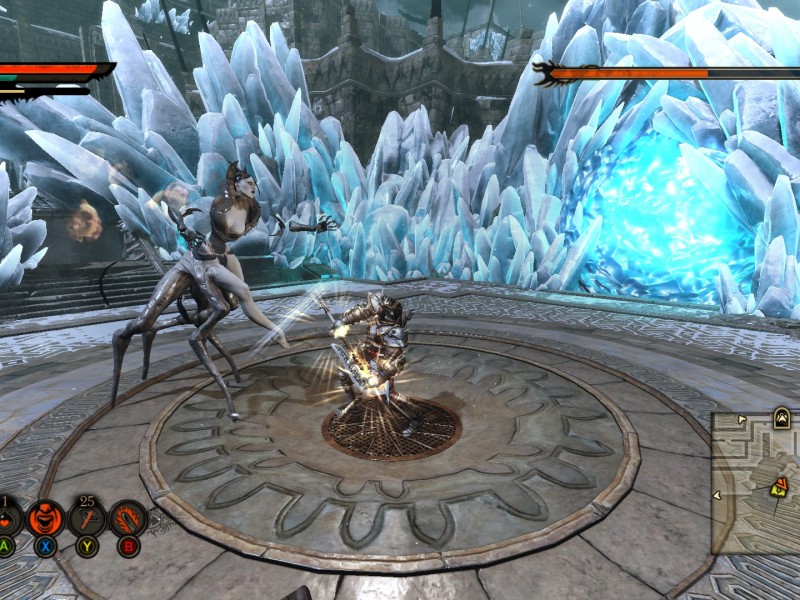 ![]() Plate-forme : PlayStation 4 Date de sortie : 09 Mai 2014 Editeur : Développeur : Genre : RPG Multijoueur : Non Jouable via Internet : Non Test par Nic0076.5/10 Spiders lance un nouveau jeu de rôle occidental évoluant dans un univers médiéval et gothique. Il était une fois.Développé par Spiders (Of Orcs and Men, Mars War Logs), Bound by Flame vous propulse à Vertiel, un monde au bord du désastre, ravagé par les 7 Seigneurs du Froid et leur Mortarmée. Vous incarnez Volcan, un mercenaire possédé malgré lui par un démon de flammes. Tout au long du jeu, les choix et les décisions que vous prendrez détermineront si vous laisserez le démon prendre de plus en plus possession de vous, vous transformant physiquement au fur et à mesure en échange de ses pouvoirs de feu, ou au contraire si vous lui résisterez afin de garder votre humanité et développer à la place vos compétences héroïques. Votre alignement humain/démon aura un impact notable non seulement sur la manière d'aborder les combats, mais également sur la réaction de votre entourage, notamment votre relation avec vos compagnons (il est possible d'envisager une romance). Il vous sera possible de développer librement votre personnage et votre style de combat à travers trois arbres de talents (armes lourdes du Guerrier, style furtif et agressif aux dagues du Ranger, pouvoirs destructeurs du Pyromancien). Bien sur, Volcan pourra compter sur la présence de compagnons de route pour l'assister au combat, et chaque protagoniste à des compétences propres que vous pourrez exploiter à travers la roue tactique héritée d'Orcs and Men. Concernant le gameplay en lui-même, on retrouve de l'action dans la lignée du récent Mars War Logs. La progression s'avère fort balisée, pour ne pas dire en couloirs, où vous attendent des groupes d'ennemis toujours plus nombreux. N'espérez pas explorer librement ce monde fantastique, ni pouvoir varier un peu les tâches, les mécanismes demeurent identique du début à la fin du jeu, seul le degré de difficulté augmentant au fil des combats. On pourra d'ailleurs regretter une intelligence artificielle qui manque de constance. L'aventure de Bound by Flame est composée de trois actes. Le premier vous propulsera dans des marais, puis ensuite vous flânerez dans des montagnes gelées pour finir dans une ville réduite en cendres. Le personnage peut se battre avec deux types d'armes : une à deux mains et deux dagues rapides. Bien sur, il est possible de faire parler le démon qui habite Volcan à tout moment. En esquivant un coup au bon moment, vous déclencherez une puissante contre-attaque automatique. Naturellement, le personnage gagnera des points de compétence durant la partie, permettant de débloquer de nouveaux combos ou d'améliorer les attaques actuels. Votre équipement pourra également être modifié pour mieux correspondre à vos attentes, et pour ce faire, il faudra récupérer les éléments nécessaires sur les corps des ennemis mais aussi dans les coffres disséminés ça et là à Vertiel. Une réalisation à la hauteur ?Sur le plan technique, Bound by Flame est hélas moins reluisant. Le graphisme manque singulièrement de finesse pour une production PlayStation 4, les environnements sont souvent très cloisonnés et les animations ne jouissent pas d'une grande variété. Il est bien sur possible de jouer directement sur la PlayStation Vita via la fonctionnalité Remote Play, mais la lisibilité n'est pas optimale. La jouabilité est assez simple d'accès, et reprend un système d'évolution désormais assez classique. Les combats font preuve de tactique, mais la confusion règne parfois à l'écran, surtout que les bogues sont encore assez nombreux. Et que dire du level design répétitif au possible, et surtout de l'intelligence artificielle alliée ... La bande son signée Olivier Derivière s'avère assez soignée, les doublages anglais sont globalement plutôt convaincants (textes écran en français) à contrario des bruitages un peu creux. On pourra cependant regretter que le titre soit un peu trop bavard. La durée de vie est assez correcte puisqu'il faudra une bonne vingtaine d'heures pour en voir le bout (moitié moins si vous vous focalisez sur la seule trame principale). Reste à savoir si vous aurez la patience d'aller jusqu'au bout, du fait de la très grande répétition des missions. VERDICT-Bound by Flame est un jeu plutôt sympathique à découvrir, mais qui s'avère aussi d'une rare linéarité : Les combats sont très répétitifs et la réalisation technique manque singulièrement de finesse. L'atmosphère du jeu est heureusement très intéressante et le background médiéval est très pertinent. |
