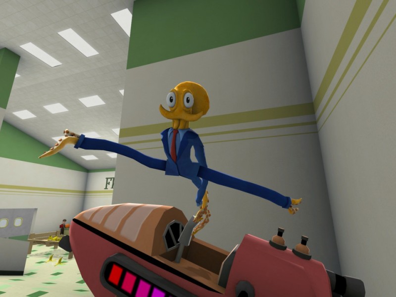 ![]() Plate-forme : Wii U Date de sortie : 29 Octobre 2015 L'étonnant Octodad est finalement adapté sur Wii U. Né en tant que projet étudiant, Octodad a bien changé depuis sa première participation à l'E3. Le jour de son mariage, le céphalopode jaune ne trouve rien d'autre à faire que d'arriver en retard. Il doit rapidement s'habiller, une chose facile pour un humain, mais qui devient vite compliqué chez un poulpe se déplaçant comme un pantin désarticulé ! Enfin arrivé à l'autel, il parvient finalement à rejoindre sa future épouse, tout en cachant sa véritable identité au reste du monde. C'est le début d'une vie familiale bien délicate qui commence. Votre objectif sera en effet de vivre la vie de tous les jours d'un poulpe presque sous couverture. De la maison au supermarché, en passant par l'aquarium municipal, il faudra dissimuler la nature d'Octodad, grimé dans un complet bleu heureusement assez discret pour dissimuler ses tentacules. Bien évidemment un individu n'est pas dupe : Le poissonnier qui désire le transformer en sushis ! Forcément, beaucoup de joueurs risquent de s'interroger sur le scénario du jeu, sans compter qu'Octodad a deux enfants tout ce qu'il y a de plus humain. Le tout est porté par une réalisation technique et sonore relativement soigné, et un univers qui ne manque pas de personnalité. Lancé à la base sur PC, Octodad n'est pas si évident au GamePad Le gâchette gauche gère la jambe gauche, et la droite la jambe droite. En maintenant les touches appuyées, le personnage peut ainsi se mouvoir en utilisant les sticks analogiques. Vous pourrez également saisir différents éléments du décor, mais aussi de se cacher sous un bac pour se déplacer discrètement. La jouabilité n'est vraiment pas simple de prime abord, et lorsque l'on sait que la plupart des objectifs s'avèrent farfelus, certains joueurs risquent de se perdre en route. Bien sur, certains s'amuseront sur le fait qu'il est quasiment possible de tout détruire sur son passage. On pourra toujours dire que la physique est très développée et qu'il est possible d'interagir avec beaucoup d'éléments du décor. Une chance, la version Wii U est sous-titrée en français, ce qui permet de saisir tout le second degré d'Octodad (les dialogues sont assez nombreux). La caméra est étrangement fixe, mais les angles sont heureusement vite réactifs. Côté durée de vie, la campagne se boucle en seulement trois heures, ce qui demeure un brin court. Si sut Steam, le Workshop permet à la communauté de concevoir ses propres niveaux, aucune option similaire n'est affichée pour l'heure sur la console de Nintendo. Malgré tout, la rejouabilité est plutôt correcte, et les plus courageux pourront s'y essayer à quatre joueurs, chacun contrôlant un des membres du personnage. Wii U oblige, il est bien sur possible de jouer directement sur le GamePad via la fonctionnalité OffTV Play. VERDICT-Octodad est une production assez singulière. Incarner un poulpe désireux de vivre comme les humains est une idée plutôt amusante, et le gameplay farfelu ne manque pas d'audace. Très drôle, le jeu demeure un peu courte, mais présente une expérience qui mérite d'être découverte. |