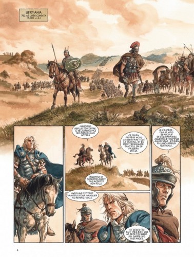 La réalité historique est une fois encore particulièrement respecté dans ce tome 5 des Aigles de Rome. Certes, la fin est connue d'avance, mais c'est le propre de toute tragédie. La petite histoire apporte néanmoins une touche de surprise, notamment un épilogue qui laisse augurer de grands changements pour la suite. En attendant, l'intrigue fait des pas de géants, et on voit les deux héros enfin en pleine action, sur fond de conflit entre Germains et Romains. Comme à l'accoutumée, le dessin de Marini s'avèrent toujours aussi réussis, précis et inventif. Les trois ans d'attente valaient clairement l'attente.