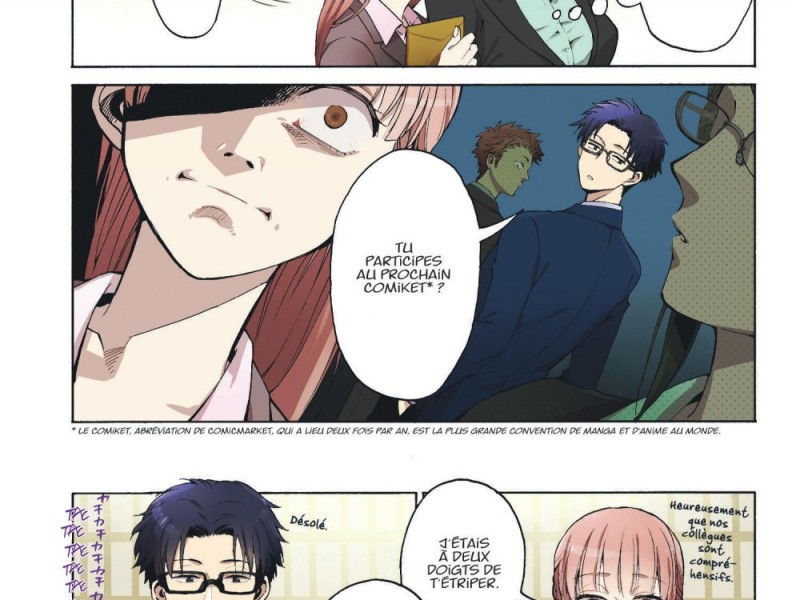 Cette série met donc en scène deux jeunes gens peu à l'aise avec les sentiments amoureux du fait de leur "otaku attitude" ou plutôt ce qu'elle génère chez les autres. Ce duo atypique passe l'essentiel de son temps à lire et à jouer à des jeux vidéos. Comme ils se comprennent très bien, ils décident de se mettre ensemble et de se laisser porter pour voir où cela les mènera. Les chapitres proposés sont courts mais ils permettent de se focaliser sur des séquences amusants qui raviront les amateurs de pop culture. Narumi et Hirotaka ont des caractères très opposés, pour elle cette relation ne semble qu'une façade, pour lui bien davantage. Étonnamment, les personnages secondaires (essentiellement des collègues de travail) sont aussi des geeks. Du côté des dessins, ce premier ouvrage de Fujita présente des planches très agréables et relativement dense en détails, sans compter les petites notes en bas de pages.