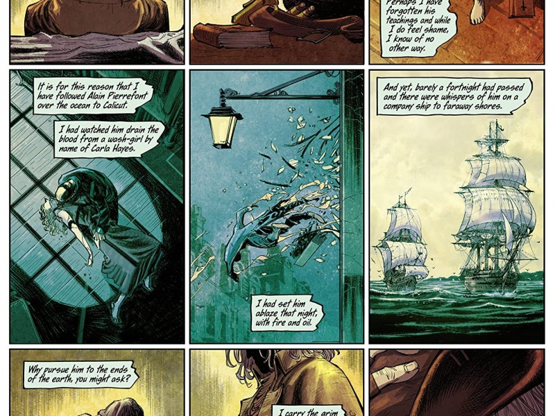 Le mythe de la création du christianisme, celui qui marque la soi-disant civilisation occidentale, est celui qui nous appelle à la soumission à des autorités inaccessibles et à la punition pour la désobéissance à ces absolus pré-existentiels. Jouez selon mes règles, suivez mes ordres ou subissez les conséquences humiliantes et douloureuses. D'autres mythes de création d'origines diverses partagent également l'élément de docilité et d'assujettissement par le pouvoir, acceptant l'infériorité de l'espèce humaine au sein de la force de la nature ou du cosmos. Et c'est ce complexe d'infériorité qui conduit l'être humain à rechercher le pouvoir, comme une faim insatiable, à s'imposer au reste et à gratter un morceau de divinité. "Comment es-tu venu dans ce monde?" est la question récurrente que reçoit la créature primitive mettant en vedette Wild Shores. Et l'histoire varie avec chaque réponse, mais la violence, la lourdeur tragique de la conscience et le désir irrépressible d'ascension (même à travers le cannibalisme) sont présents dans toutes. La prédation des égaux, la xénophobie et la misanthropie explicites pour faciliter le processus, sont les fondements du pouvoir absolu, l'origine de tout empire. Ainsi, se déroulant lors de la première guerre anglo-Mysore de 1767, l'œuvre du scénariste Ram V et du dessinateur Sumit Kumar (tous deux d'origine indienne), accompagnée de l'impressionnant travail du coloriste Vittorio Astone, nous propose un conte de monstres et de masques au milieu de la lutte impérialiste pour le contrôle de la Route de la Soie par la Compagnie britannique des Indes orientales. Et s'il peut sembler que la période qui se situe dans l'Inde du 18e siècle ou la charge critique et réfléchie des thèmes susmentionnés couvrira une grande partie de l'œuvre, la vérité est que le scénario de Ram V est intelligemment soutenu par des bases solides pour raconter un drame d'horreur avec des notes de romance qui établit le choc entre la civilisation et la barbarie à travers ses créatures monstrueuses.