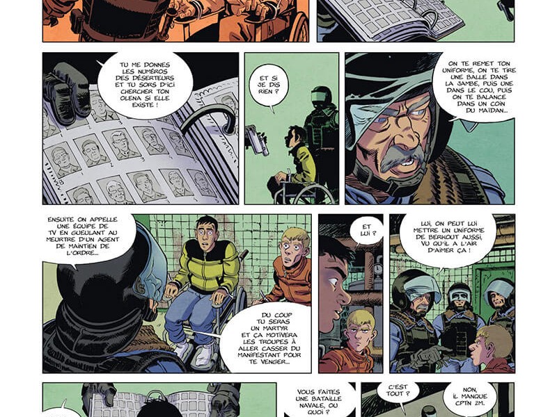 Bogdan, un Berkut (fictif) en formation, a laissé toute certitude derrière lui dans la première partie de ce diptyque de bande dessinée. Il a risqué son avenir et sa vie pour sa fiancée, qui était en danger au milieu des émeutes très turbulentes. Maintenant, dans la dernière partie de ce diptyque, il doit vivre avec les conséquences de ce choix. Fuyant les siens et se méfiant des autres. Il croit au pouvoir de son amour, mais autour de lui, tout ce en quoi il croyait est brisé. Dans Yvanna (partie 2), Aurélien Ducoudray lâche un peu plus les faits authentiques des protestations ukrainiennes pour se concentrer plus librement sur les conséquences des choix de Bogdan et sur la reprise de l'Ukraine. Cependant, quiconque pense que la scène assez aliénante des Warriors of Narnia dans la banque n'est qu'un produit de l'imagination galopante de Ducoudray déshonore le scénariste. Croyez-le ou non, le nom Warriors of Narnia apparaît parfois également dans les reportages officiels et les rapports scientifiques sur les heures trépidantes et après les jours d'émeutes ukrainiennes de 2014. Il est caractérisé comme un groupe avec des sympathies néo-nazies. Certains mentionnent même des styles vestimentaires remarquables. Ducoudray ne doit donc pas aller trop loin dans son imagination. Ce n'est cependant pas la première fois que Ducoudray opte pour un remarquable mélange entre fiction et réalité. Certains trouveront cela réussi, d'autres moins. On peut déjà le goûter.