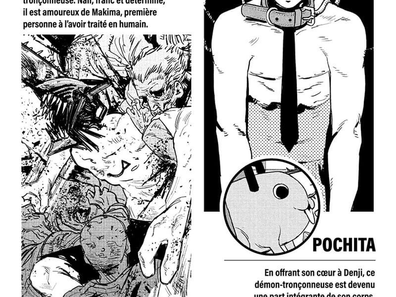 Chainsaw Man est une série toujours en cours de parution au Japon et qui a déjà connu sept tomes à ce jour aux éditions Shueisha. Les pouvoirs du chien-démon-tronçonneuse Pochita sont utiles contre les puissants démons. Mais quand son "employé", le jeune Denji, finit par être tué par un démon, Pochita se sacrifie pour lui sauver la vie et le faire revivre. Mais maintenant Denji renaît comme une sorte d'étrange hybride humain-démon. Il est désormais Chainsaw Man. A présent, il vit dans la grande ville et devient un chasseur de démon officiel après avoir été recruté par un mystérieux groupe. Mais il a beaucoup à apprendre sur son nouveau travail et ses pouvoirs de tronçonneuse !