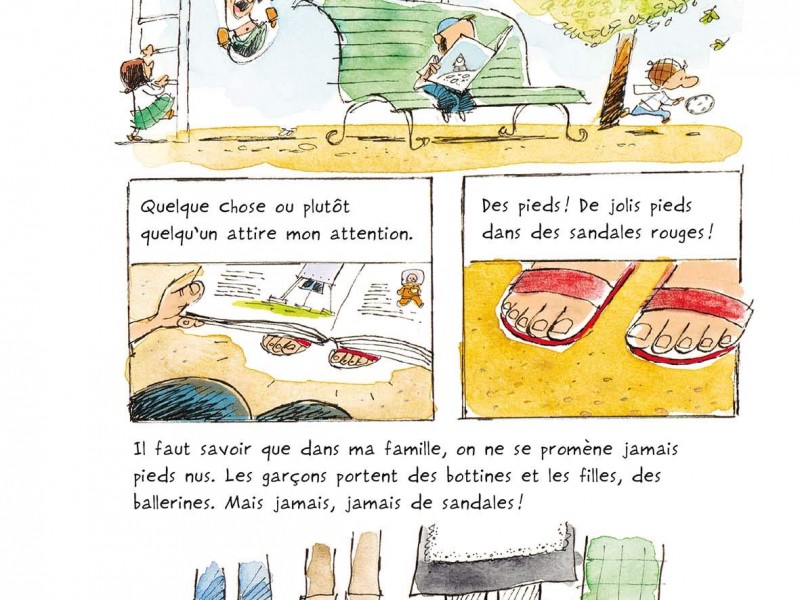 Les étoiles entraine ses lecteurs dans le quartier du Mile-End à Montréal, avec ses bagels, ses escaliers, ses maisons, sa population éclectique… et ses différentes religions. Toutefois, si le thème aurait pu en froisser certain, Jacques Goldstyn navigue avec aisance dans son récit, évitant les écueils grâce à l'humour, notamment, et aussi et surtout parce qu'il met l'accent sur ce qui nous rapproche au lieu de ce qui nous sépare. Ce sont les rêves des enfants qui sont au centre de cette histoire qui montre l’importance de s'accrocher à ses rêves et d'y croire, malgré toutes les barrières que la vie (et les adultes) peut mettre sur notre chemin. Le thème est porteur, le texte est tout en sensibilité, à hauteur d'enfant, mais aussi riche en sens (et en détails), ce qui interpellera les plus âgés. La structure est éclatée avec des pages sans texte pour rêver un peu, prendre une grande respiration, des cases sans contour qui s'agencent au gré du récit, une prédominance du bleu pour l'espace, mais aussi des éclats, notamment pour la chevelure d'Aïcha, que Yakov compare à un nuage interstellaire et qui n'est rien de moins que splendide.